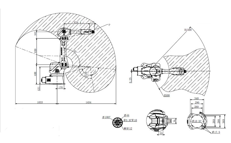 Оптимальный баланс между радиусом действия (1587 мм) и полезной нагрузкой делает модель подходящей для большинства производственных задач: от перемещения деталей до работы с инструментом. - Высокоскоростное позиционирование с точностью ±0,05 мм