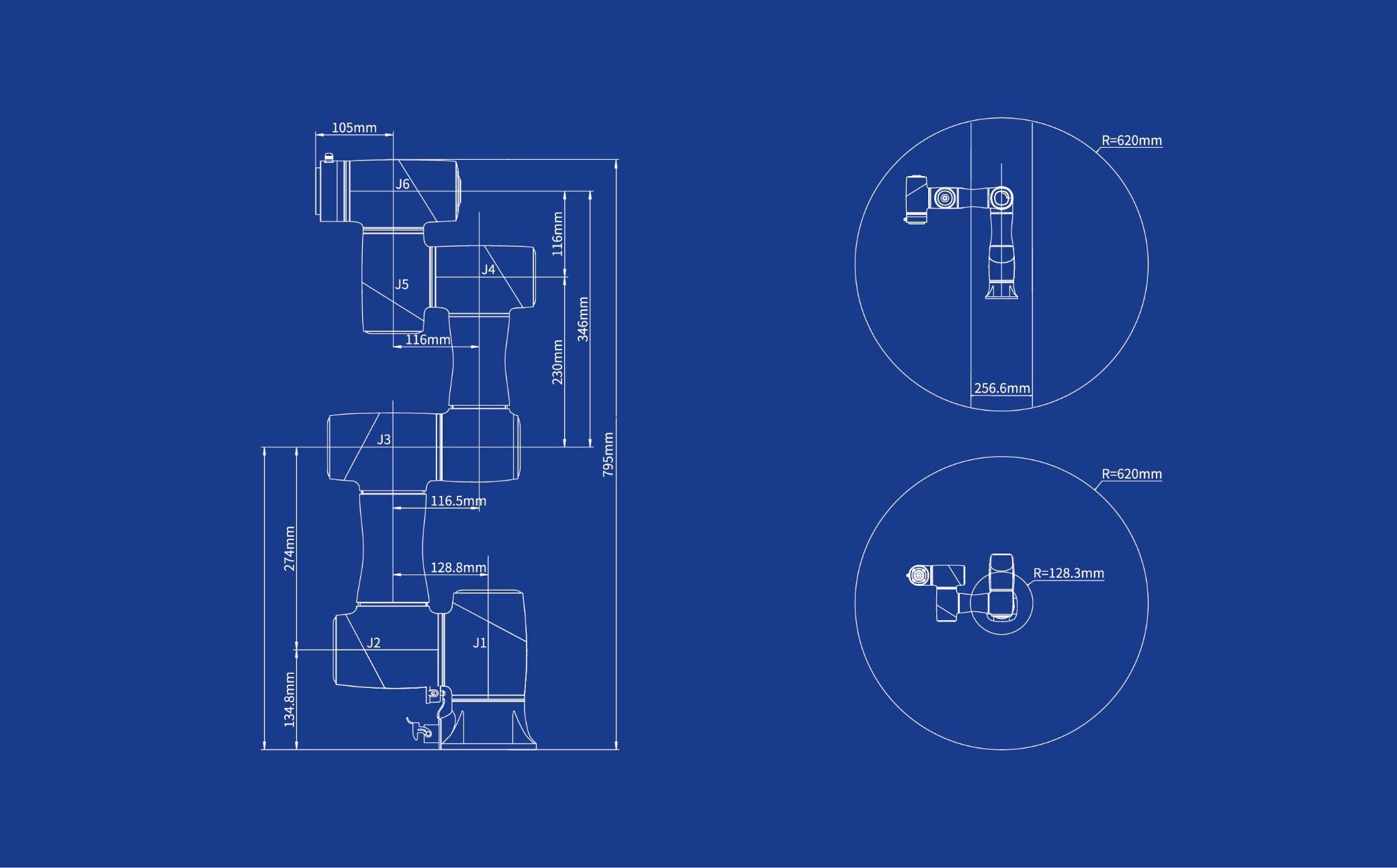 | Максимальная досягаемость | 795 мм | |