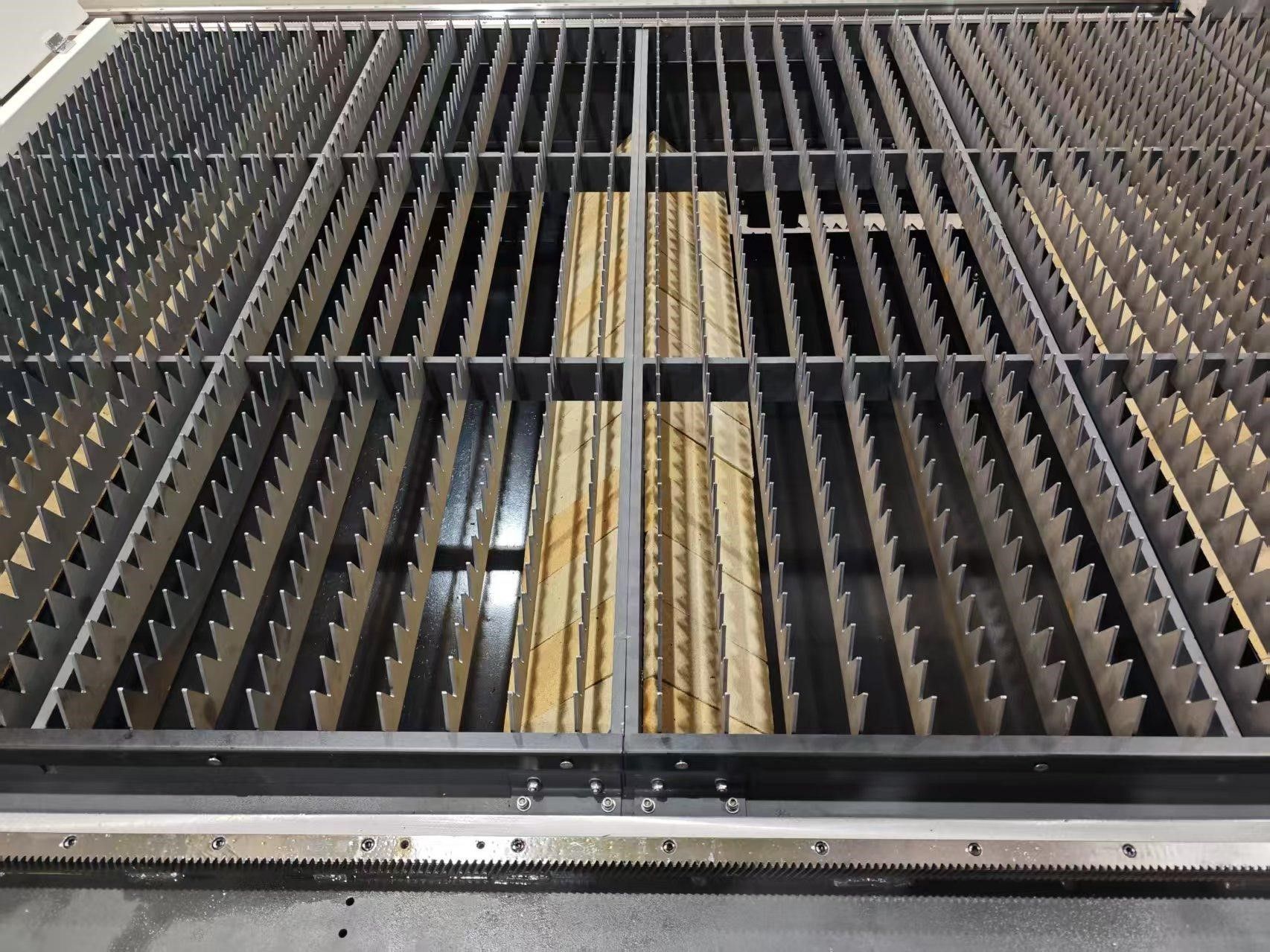Модульный рабочий стол Конструкция рабочего стола с усиленной несущей способностью позволяет легко выдерживать тяжелые листы металла и обеспечивает стабильное размещение материала в течение всего процесса резки. Модульный принцип сборки упрощает техническое обслуживание: замена ламелей выполняется быстро и не требует длительных остановок оборудования, что снижает простои и повышает производительность. |