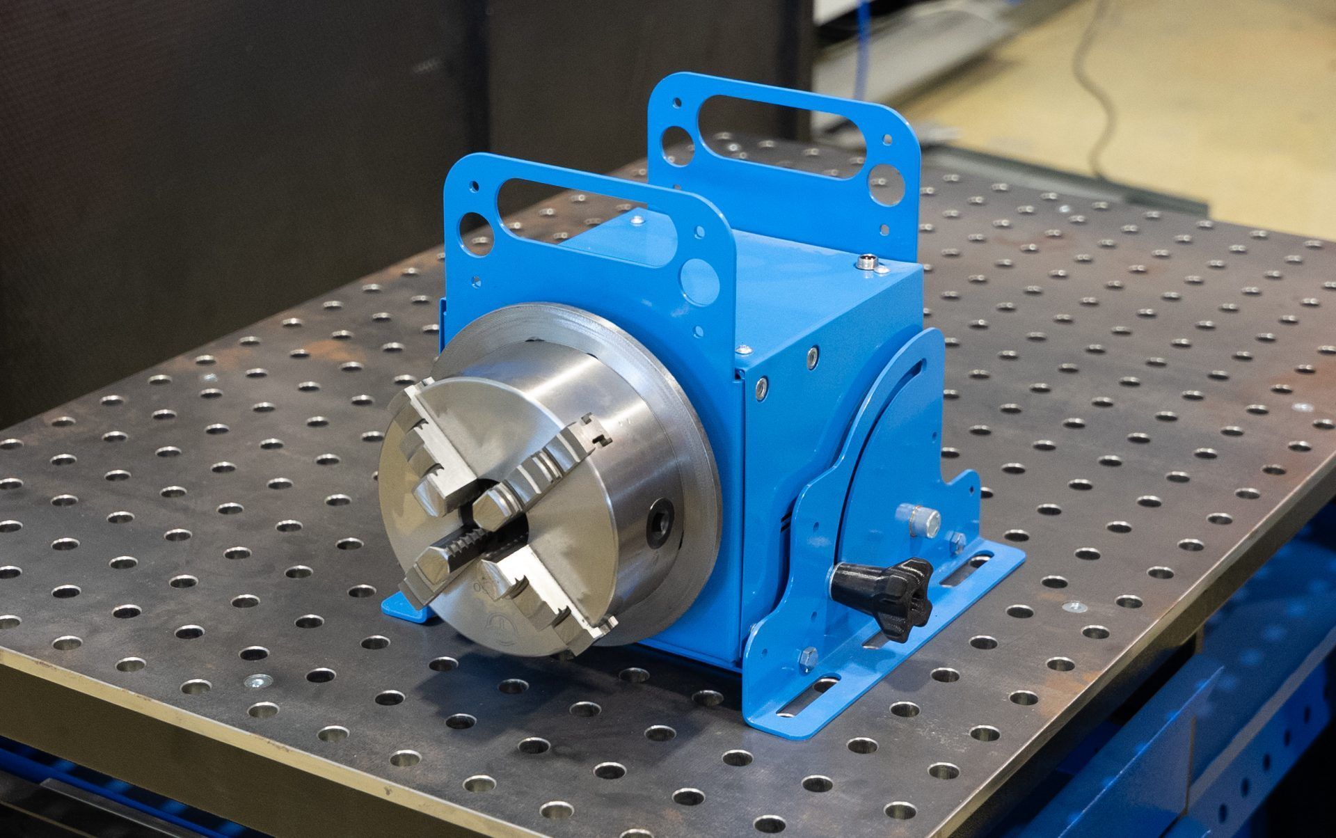 Опционально установка может комплектоваться настольным вращателем, который позволяет автоматически поворачивать круглые и осесимметричные заготовки по горизонтальной или вертикальной оси.