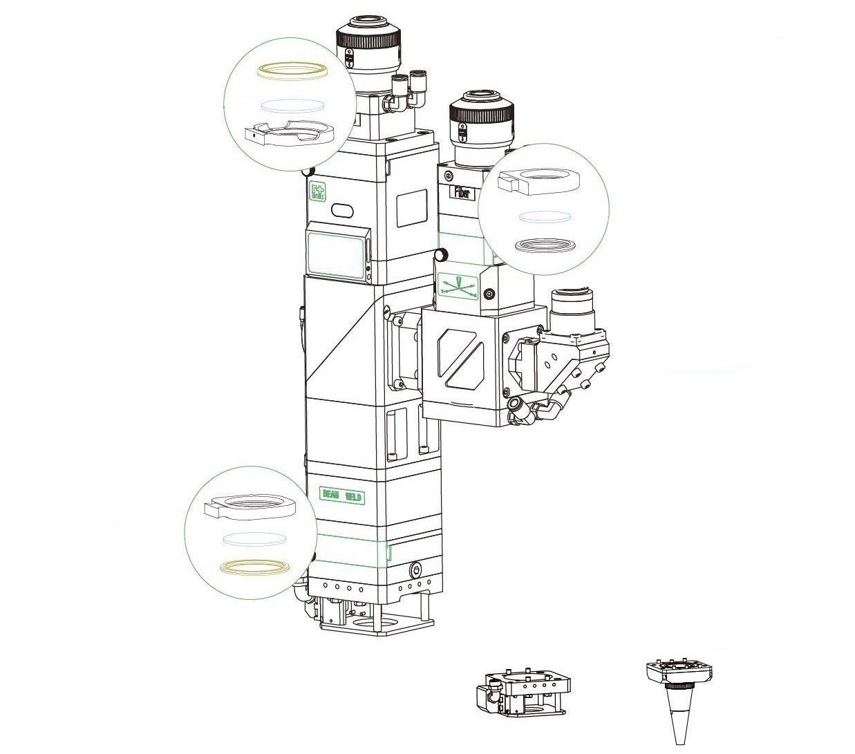 - Головку можно оснастить CCD-камерой и системой лазерного зрения для контроля швов. Они расширяют функционал аппарата для лазерной сварки и повышают эффективность работы.
